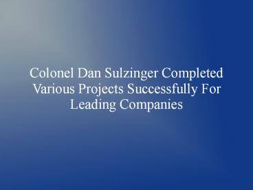 Title: Colonel Dan Sulzinger Completed Various Projects Successfully For Leading Companies