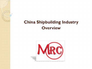 China Shipbuilding Industry Overview PowerPoint PPT Presentation