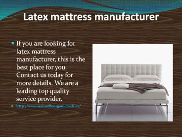 Our natural latex toppers are made of completely natural latex. Our natural latex mattress toppers are the very best in this business. Contact us for more details. – PowerPoint PPT presentation
