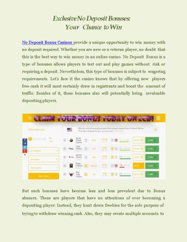 Title: Exclusive No Deposit Bonuses: Your Chance to Win