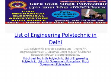 List of Engineering Polytechnic in Delhi (1) PowerPoint PPT Presentation