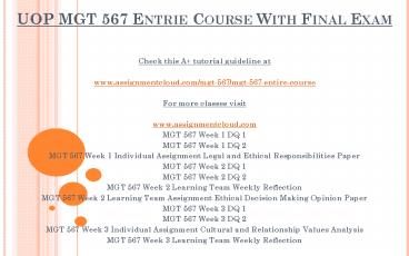 UOP MGT 567 Entrie Course With Final Exam PowerPoint PPT Presentation