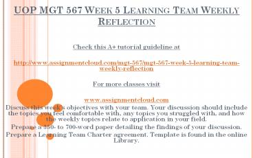 UOP MGT 567 Week 5 Learning Team Weekly Reflection PowerPoint PPT Presentation
