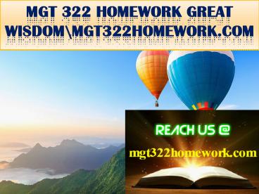 Title: MGT 322 HOMEWORK GREAT WISDOM\mgt322homework.com