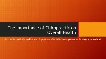 The Importance of Chiropractic on Overall Health PowerPoint PPT Presentation