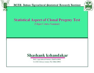 Statistics), Roll No.10684 I.A.S.R.I. Library