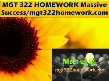 Title: MGT 322 HOMEWORK Massive Success/mgt322homework.com