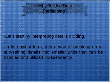 Why To Use Data Partitioning? PowerPoint PPT Presentation