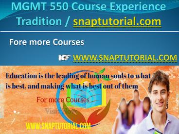 MGMT 550 Course Experience Tradition / snaptutorial.com PowerPoint PPT Presentation