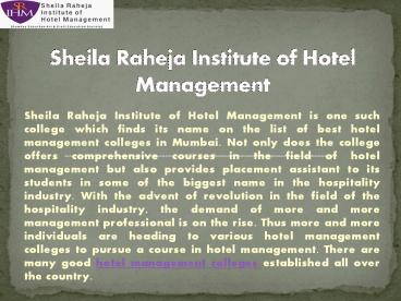 • Sheila Raheja Institute of Hotel Management is