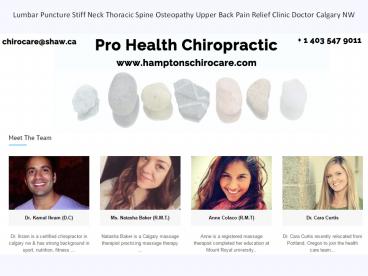 Lumbar Puncture Stiff Neck Thoracic Spine Osteopathy Upper Back Pain Relief Clinic Doctor Calgary NW PowerPoint PPT Presentation