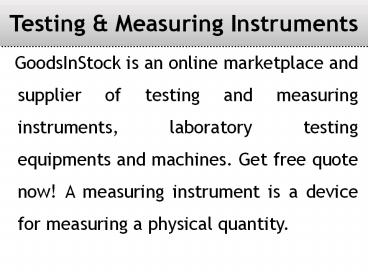 Testing & Measuring Instruments PowerPoint PPT Presentation