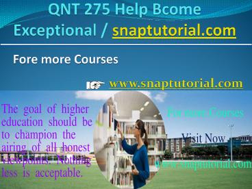Title: QNT 275 Help Bcome Exceptional / snaptutorial.com