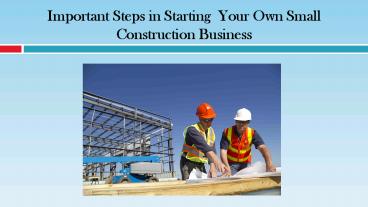 Important Steps in Starting Your Own Small Construction Business PowerPoint PPT Presentation