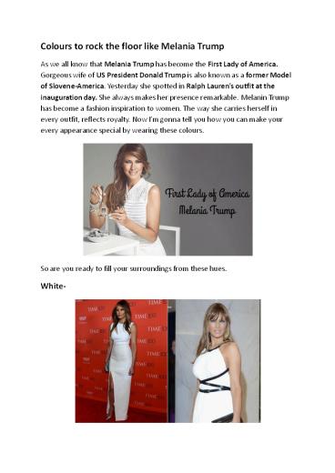 First Lady of America, Melania Trump Fashion Statement PowerPoint PPT Presentation