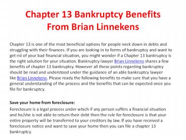 Title: Chapter 13 Bankruptcy Benefits From Brian Linnekens
