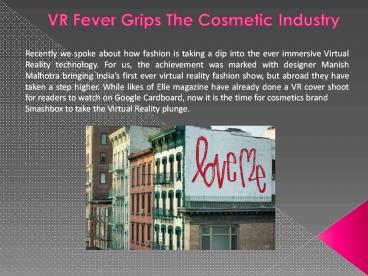 Title: VR Fever Grips The Cosmetic Industry
