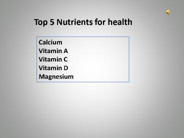 Calcium Vitamin A Vitamin C Vitamin D Magnesium