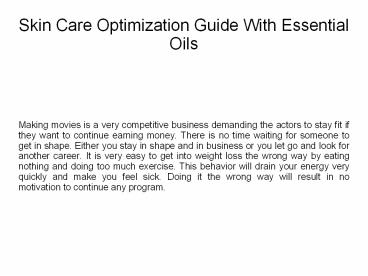 Skin Care Optimization Guide With Essential Oils PowerPoint PPT Presentation