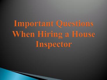 Title: Important Questions When Hiring a House Inspector
