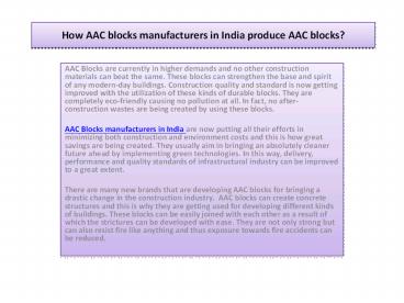 How AAC blocks manufacturers in India produce AAC blocks? PowerPoint PPT Presentation