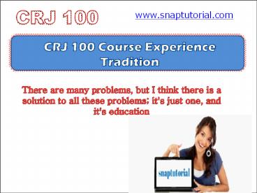 Title: CRJ 100 Course Experience Tradition / snaptutorial.com