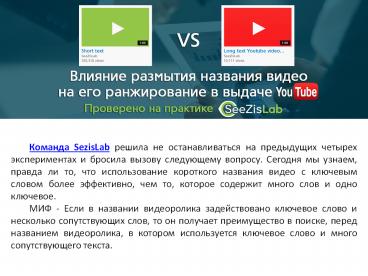 Влияние размытия названия видео на его ранжирование в выдаче YouTube - SeeZisLab PowerPoint PPT Presentation