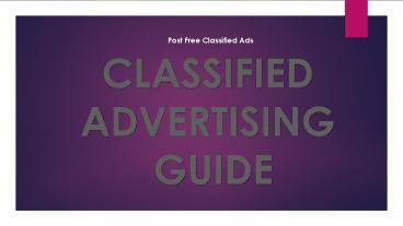 Post Free Classified Ads – Classified Marketing Guide PowerPoint PPT Presentation