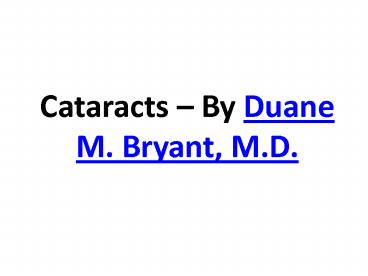 1Cataracts By Duane M. Bryant, M.D.
