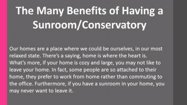 The Many Benefits of Having a Sunroom/Conservatory PowerPoint PPT Presentation