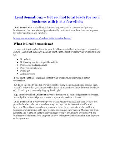 Stay tuned for more detailed information! - GET https//crownreviews.com/lead-sensationz-revi