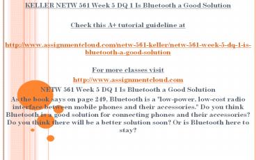 • KELLER NETW 561 Week 5 DQ 1 Is Bluetooth a Good