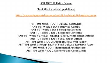 ASH ANT 101 Entire Course PowerPoint PPT Presentation