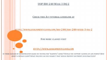 UOP BIO 240 Week 3 DQ 2 PowerPoint PPT Presentation