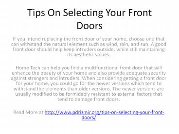 Tips On Selecting Your Front Doors PowerPoint PPT Presentation