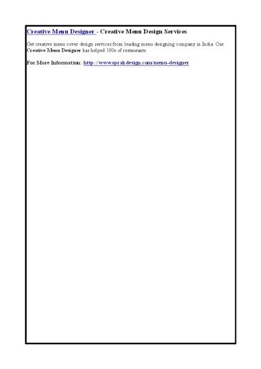 Creative Menu Designer - Creative Menu Design Services PowerPoint PPT Presentation