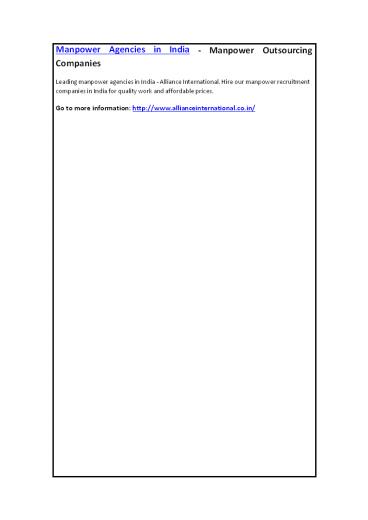 Manpower Agencies in India - Manpower Outsourcing Companies PowerPoint PPT Presentation