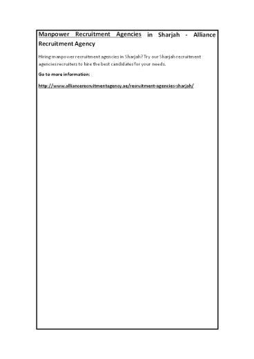 Manpower Recruitment Agencies in Sharjah - Alliance Recruitment Agency PowerPoint PPT Presentation