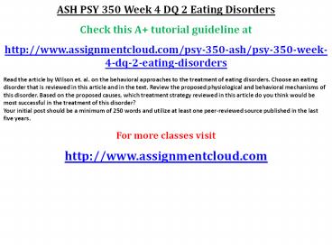 PSY 350 Week 4 DQ 2 Eating Disorders PowerPoint PPT Presentation