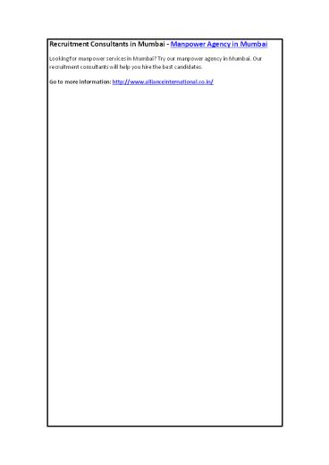 Recruitment Consultants in Mumbai - Manpower Agency in Mumbai PowerPoint PPT Presentation