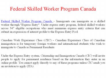 Federal Skilled Worker Program Canada PowerPoint PPT Presentation