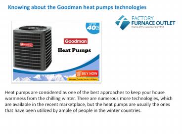 Title: Knowing about the Goodman heat pumps technologies