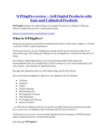 Free and No Complicated Setups. - https//crownreviews.com/wpdigipro-review