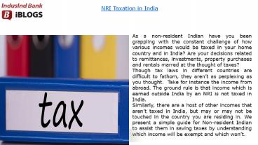 NRI Taxation in India PowerPoint PPT Presentation