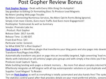 Title: Post Gopher Review Bonus