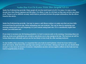 Title: Sasha Dae Get Fit Faster With This Helpful Advice