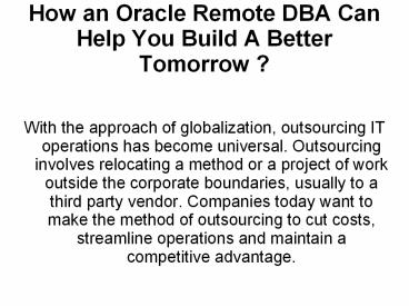Oracle Remote DBA Support PowerPoint PPT Presentation