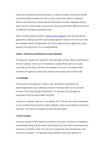 Pros and Cons of Hybrid Cloud Architecture Approaches PowerPoint PPT Presentation