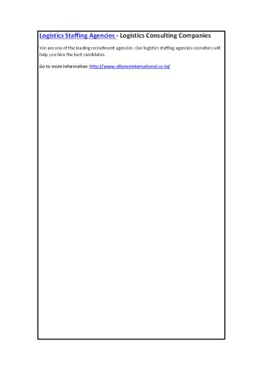 Logistics Staffing Agencies - Logistics Consulting Companies PowerPoint PPT Presentation