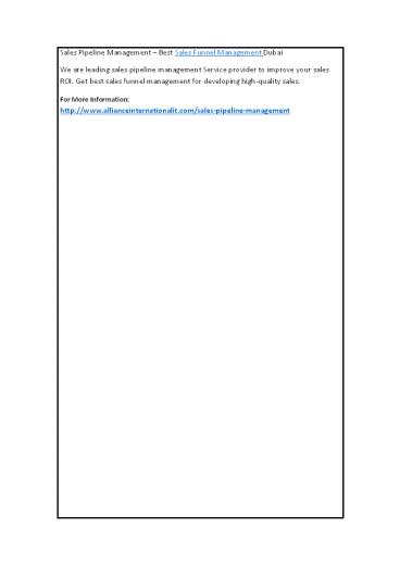 Management Dubai We are leading sales pipeline